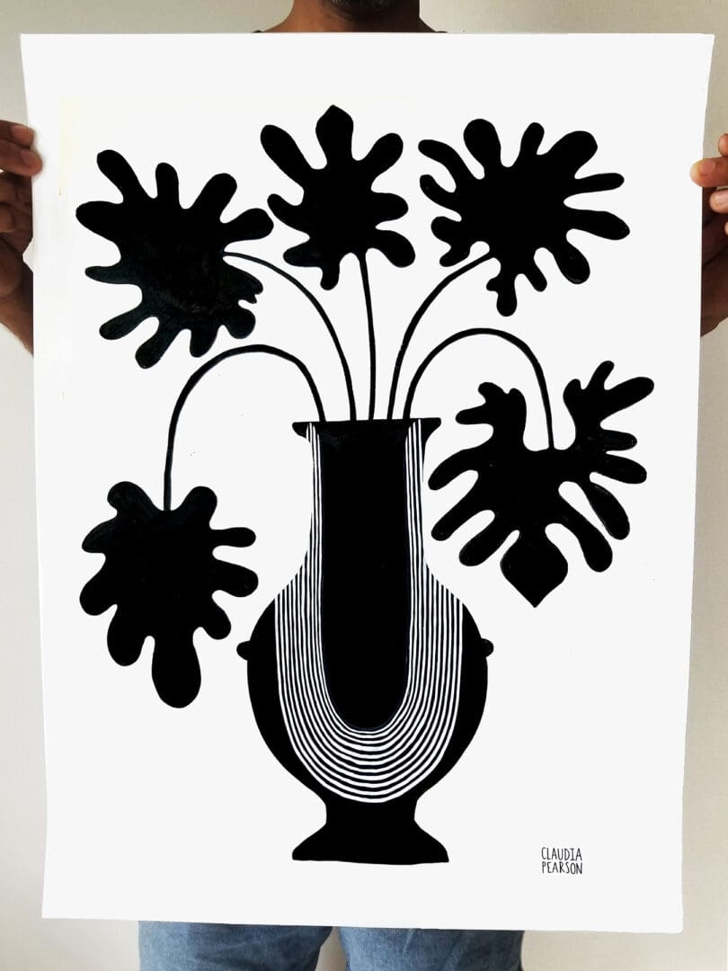 I started painting with traditional Chinese ink on watercolor paper and used white paint on top to create extra texture and patterns.